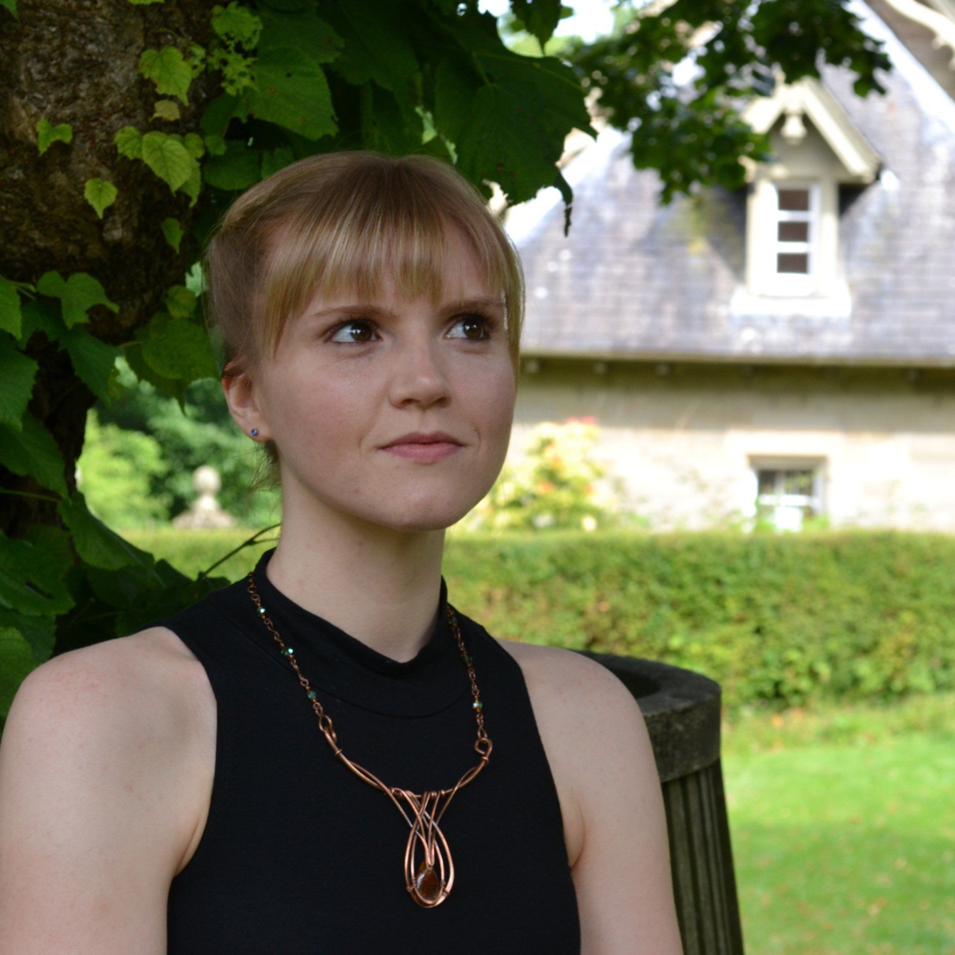 "This stunning piece arrived on New Year's Eve and what a beauty. I couldn't wait to wear it. I loved the unusual cabochon as soon as I saw it but what Leigh has achieved with her skill at weaving the copper work is beyond magical. I will treasure it forever." Merrell Hardy